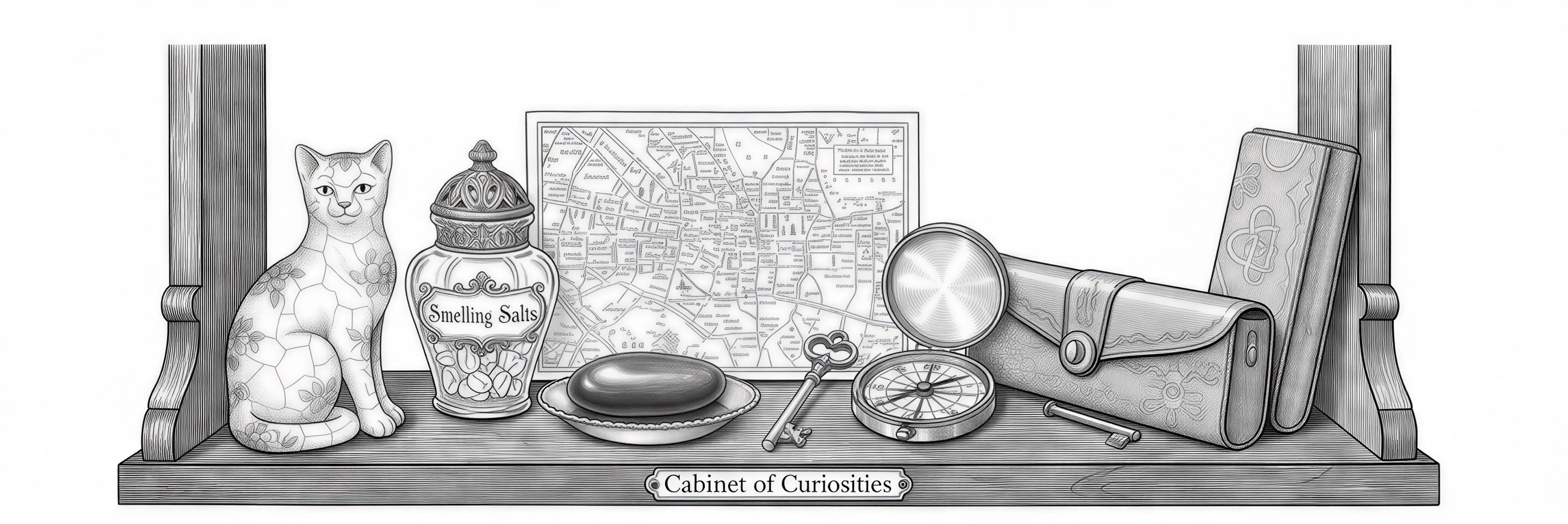 Smelling salts, London pebbles, and curious objects gathered with affection.